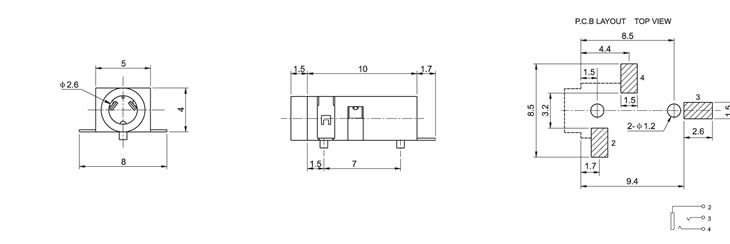 2.5(SMT)耳机插座 PJ-208