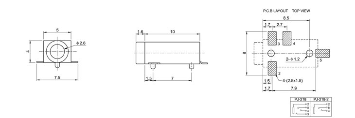 2.5(SMT)耳机插座 PJ-218