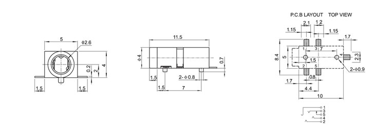 2.5(SMT)耳机插座 PJ-218D
