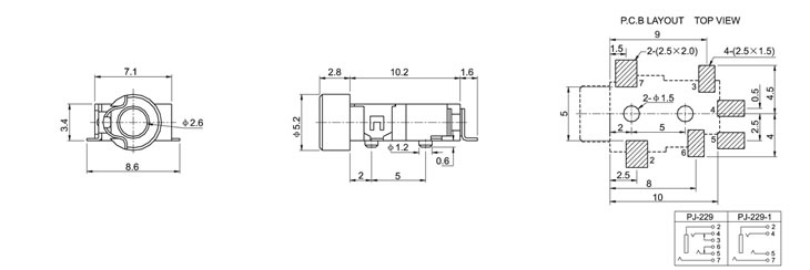 2.5(SMT)耳机插座 PJ-229