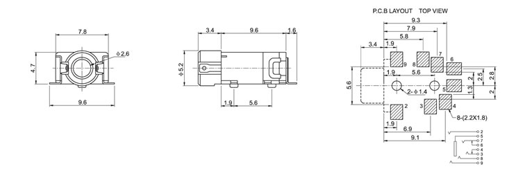 2.5(SMT)耳机插座 PJ-232