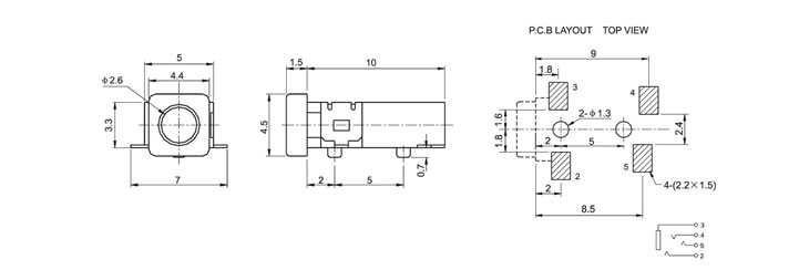 2.5(SMT)耳机插座 PJ-235
