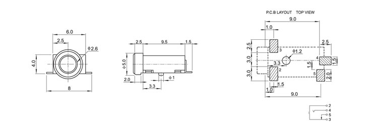 2.5(SMT)耳机插座 PJ-239