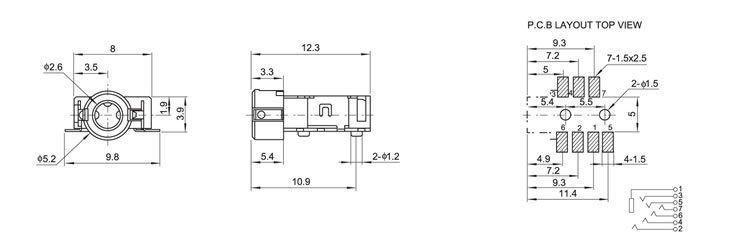 2.5(SMT)耳机插座 PJ-257