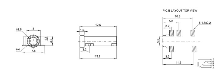 2.5(SMT)耳机插座 PJ-262