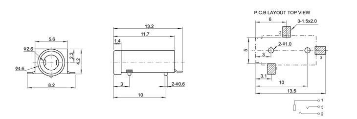 2.5(SMT)耳机插座 PJ-265