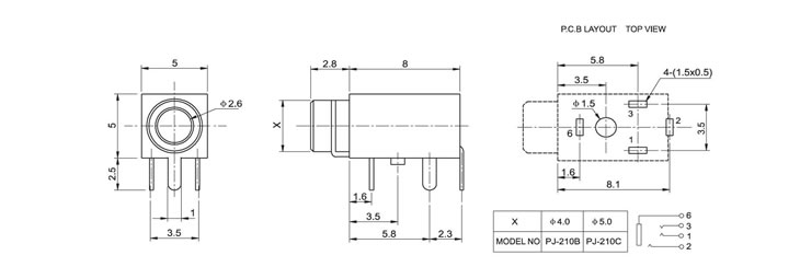 2.5耳机插座 PJ-210C