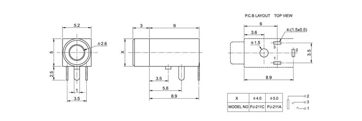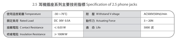 2.5耳机插座 PJ-211C