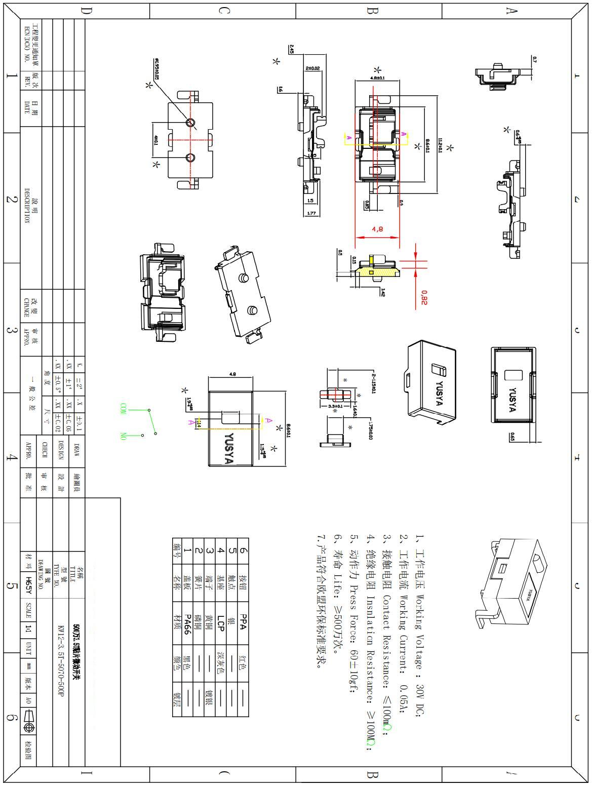 Mini 微动不带轮 弯脚