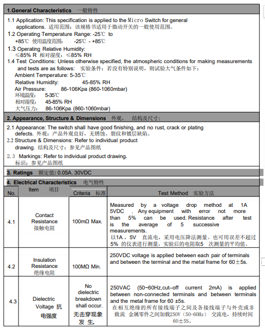 微动行程开关 系列